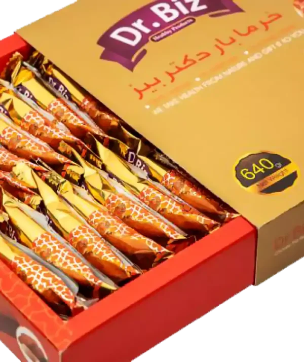 خرما بار طبیعی دکتر بیز یک میانوعده کاملاً سالمه که هم انرژی سریع میده هم قند خون رو یکباره بالا نمیبره.