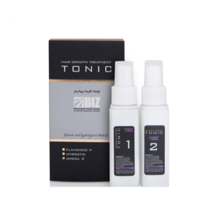 تونیک دوقلو دکتر بیز (Dr. Biz Duo Tonic) محصولی گیاهی برای درمان ریزش مو و تحریک رشد مجدد است. شامل دو تونیک مجزا (معمولاً شماره ۱ و ۲) که با هم استفاده میشوند: تونیک ۱ برای کاهش ریزش و تقویت فولیکولها (حاوی عصارههای گیاهی مانند رزماری، گزنه، آلوئهورا و ویتامینها)، و تونیک ۲ برای افزایش گردش خون و رویش موهای جدید.